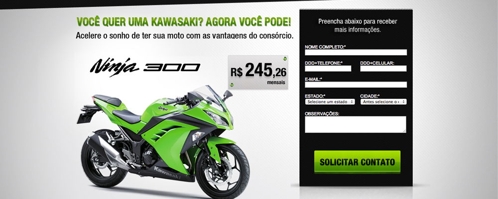 CONSÓRCIO KAWASAKI Acelere o sonho de ter sua moto com as vantagens do consórcio. |